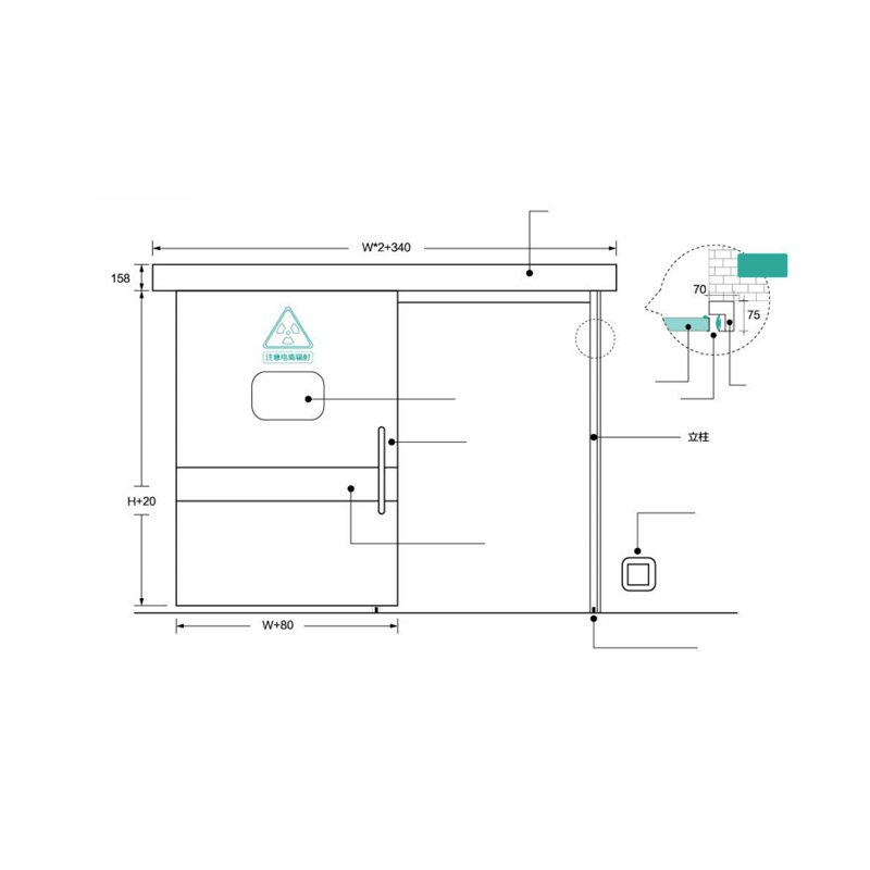 Ang natatanging istraktura ng track, na nagpapahintulot sa katawan ng pintuan na ganap na mabuksan upang maabot ang tuktok ng power beam, ay may linya na may mga lead plate, at ang window ng pagmamasid ay lead-glass leak-proof sa disenyo, epektibong paghiwalayin ang mga pagtagas ng radiation.